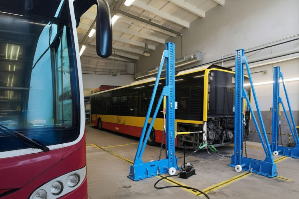 Įranga, skirta autobusų poavariniam bei eksploataciniam remontui.