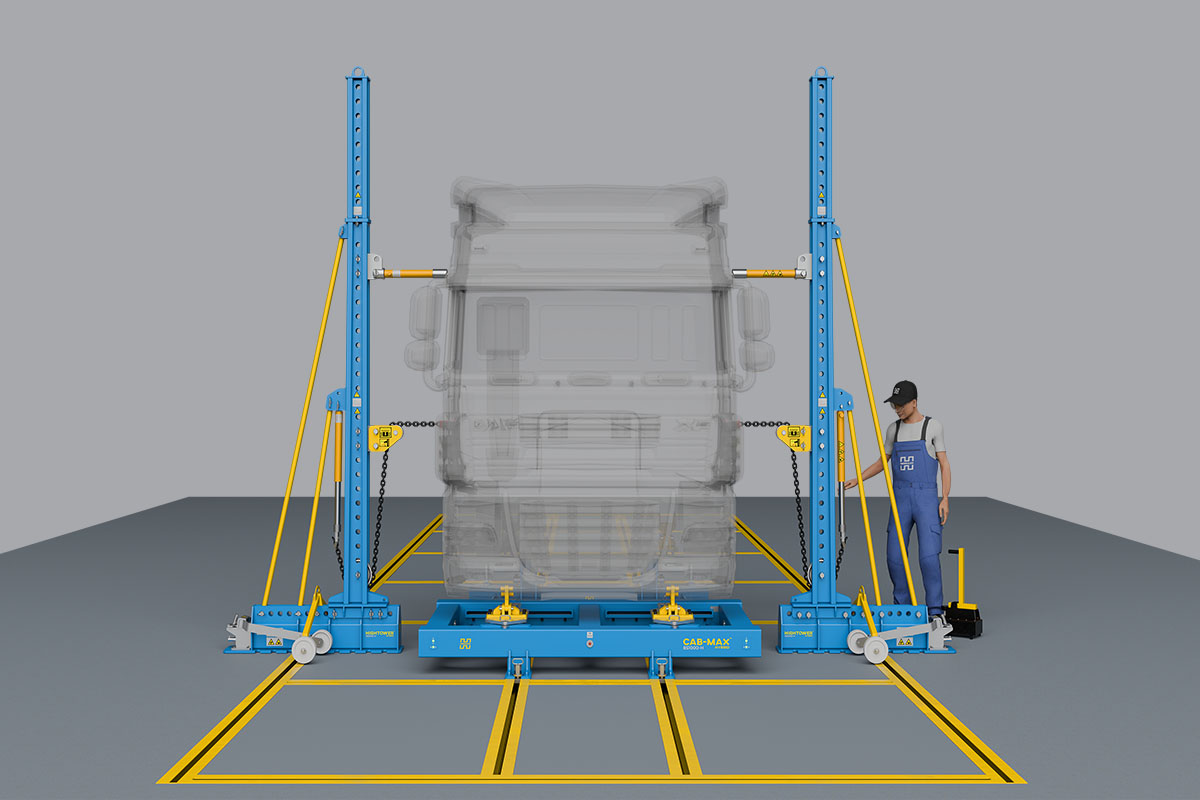 Kabinos tiesinimo stende, kuris yra rėminės ir skersinių sistemos derinys, papildomai įrengta hidraulinė kabinos dugno remonto sistema. Šio tipo įrangos konstrukcija taip pat leidžia naudoti atskirų modelių kabinų laikiklių sistemas. Taip išgaunamas kabinos dugno formos šablonas, kuris yra ypač svarbus vyrių ir fiksatorių tvirtinimo taškuose. Kaip žinote, tai keturios svarbiausios kabinos dugno vietos, nuo kurių priklauso, ar kabiną bus galima pritvirtinti prie transporto priemonės rėmo.